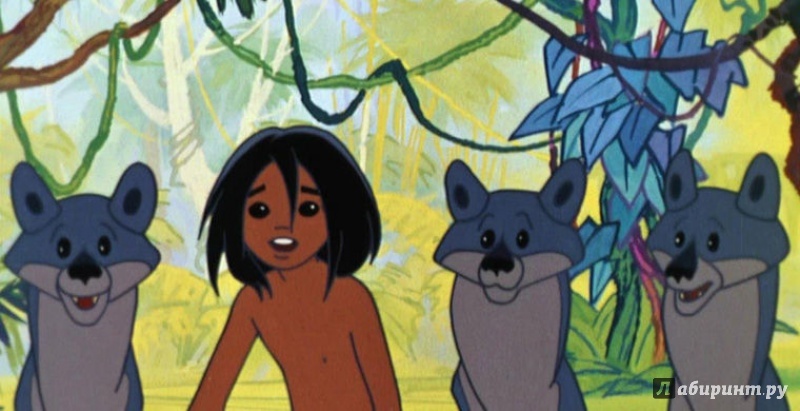 Волчица : Нет ! Я сказала я же мать!! И на этом и стою , что детей не отдаю !!! Ночь в джунглях очень коротка . Вот солнца луч из далека в пещеру темную проник и осветил её на миг . Волчица: Да ! Человеческий детенок он голый словно лягушонок . Ну как его бы нам назвать ?? Вдруг вслух спросила волчья мать . - Маугли ? Смотрите он мне улыбается ! Маугли ! Он точно видишь отзывается ! И хоть семья была большая на все невзгоды не взирая , был мальчик принят в волчью стаю . И вот пришла уже пора им выходить всем со двора . Такое было каждый год , все проходили вроде смотр. И Ракша вывела волчат и повела на смотр ребят. Скала советов , не большая . Под ней собралась волчья стая . Вожак Акелла сверх камней , чтоб было сверху по видней лениво на скале лежал. И делал вид как будто спал . В низу ворчала не смолкая , друг друга же перебивая , все обсуждала волчья стая. Ведь до того не видел век , чтоб в стае был бы человек. Вдруг тень мелькнула , а за ней , шакал промчался средь ветвей . Гол
