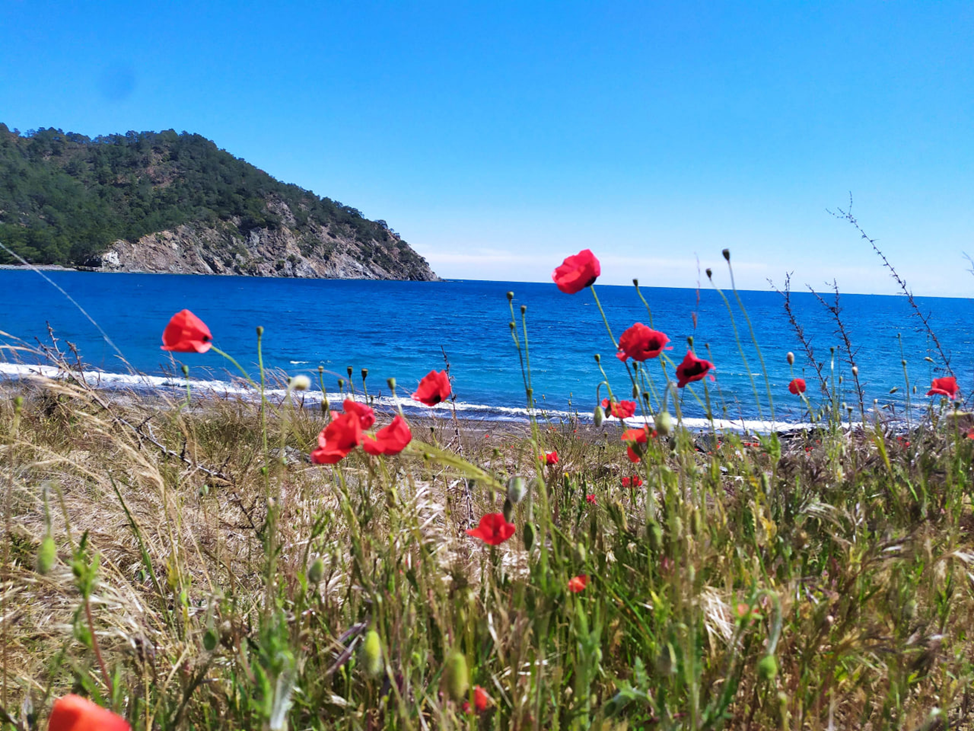 На пляже Маден можно посетить заброшенную штольню и останки фабрики по добыче хрома Дорога уходит от моря и вторая половина трека проходит по маркированной тропе до Чирали.