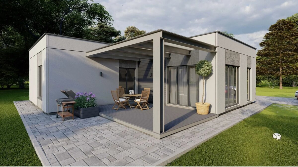 Это площадка без крыши, иногда огражденная перилами или декоративными элементами. Открытые террасы отлично подходят для летнего отдыха, загара, организации барбекю, семейных ужинов на свежем воздухе. Их плюсы — простота конструкции и максимальное единение с природой. Минус — открытость погодным условиям: в дождь или жару пользоваться такой террасой не всегда удобно.