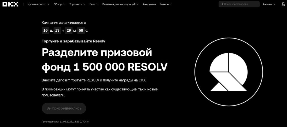 🔥 🔎 Забираем награды на бирже OKX из призового фонда 1 500 000 Resolv
