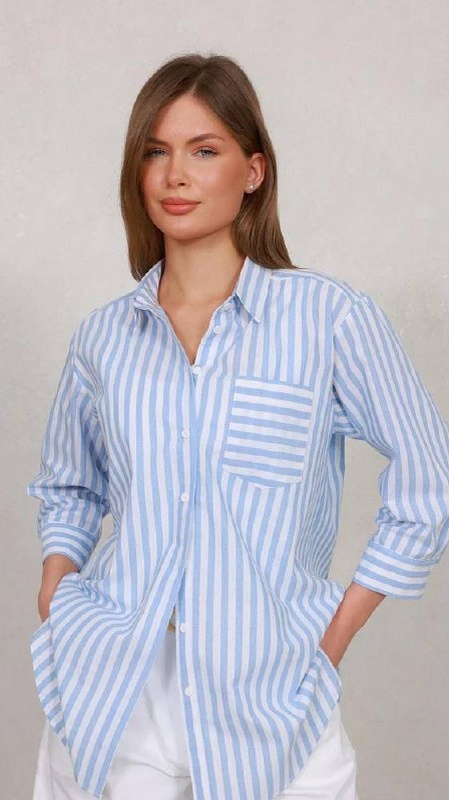 Объединяя тренды Голубой + полоска = самая модная рубашка этого сезона Небесно-голубой — фаворит 2025 года. Рубашка в небесно-голубом оттенке обещает стать главной героиней вашего летнего гардероба, поскольку на весенне-летних показах Stella McCartney, Versace, Prada и зимнем показе Tom Ford модели вышагивали именно в них. Тонкая полоска в этом сезоне — это деликатный способ, чтобы разнообразить офисный аутфит и добавить ему графичности. На летних шоу Rabanne, Bottega Veneta, Saint Laurent и Brunello Cucinelli случился настоящий бум на рубашки в тонкую вертикальную полоску. Причём, стилизации и крой были абсолютно разные. Хотите интересную рубашку, которая в гардеробе будет актуальной вечно? Если да — выберите рубашку голубого цвета: вполне достойная альтернатива белой рубашке, которую можно носить не только на работу, но и вписывать в повседневные комплекты. Да, с шортами тоже можно носить!