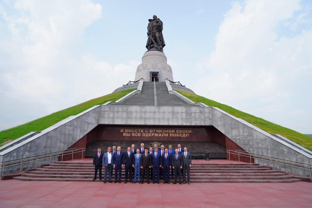 Для участия в заседании Совета межрегиональной ассоциации экономического взаимодействия субъектов РФ «Сибирское соглашение» в Кузбасс приехали губернаторы и законодатели регионов Сибирского федерального округа. Гости побывали на Мемориале Воину-Освободителю, посвященном Героям-сибирякам, победившим нацизм. Гостей провели по парковой зоне комплекса, напомнили историю создания мемориала. «В 2022 году на Мемориале установили пилоны с именами Героев Советского Союза, Героев Российской Федерации, полных кавалеров ордена Славы из сибирских регионов, – напомнил председатель Парламента Кузбасса Алексей Зеленин. – Здесь же указали названия воинских формирований, госпиталей и оборонных предприятий, эвакуированных в Сибирь». Память Героев Великой Отечественной войны почтили минутой молчания и возложили цветы к мемориалу.