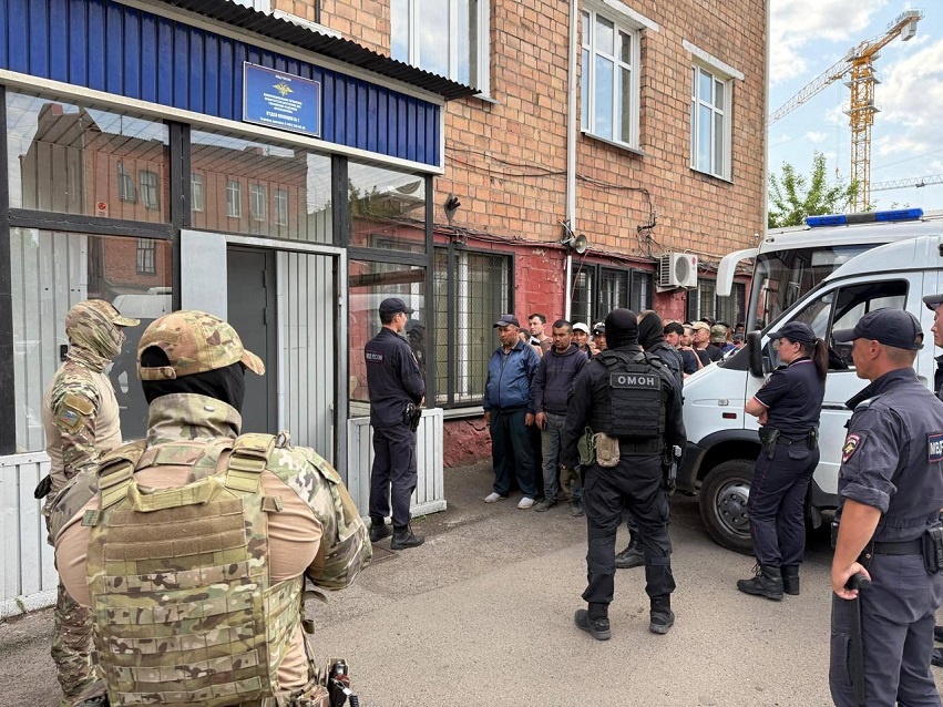 В Центральном районе Красноярска 10 июня прошёл рейд по мигрантам на территории складских баз. Об этом сообщили в полиции. Силовики проверили 302 уроженца КНР, Узбекистана, Таджикистана и Узбекистана. В результате задержали и доставили в отдел 52 человека. По результатам проверок выяснилось, что трое находились в стране нелегально — им грозит выдворение. Также полицейские составили два материала по фиктивной регистрации и пять за административные нарушения. — Кроме того, на территории баз проверено 63 грузовых автомобиля на наличие запрещенных к обороту на территории РФ предметов и веществ. Нарушений не выявлено. Рассказали в полиции. Ранее рейд по нарушениям миграционного законодательства прошёл в Советском районе. Тогда силовики задержали 27 человек. фото: t.me/mvd_24