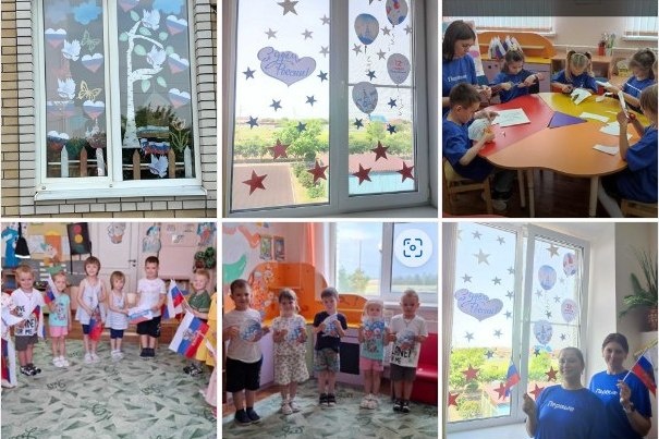 В Неклиновском районе проходят мероприятия в честь Дня России. В рамках Всероссийской акции «Окна России», посвященной Дню России, покровский детский сад детский сад «Золотой ключик» преобразился, расцветившись яркими красками патриотизма. Воспитатели, объединив усилия с воспитанниками, создали на окнах удивительные композиции, наполненные глубоким смыслом и любовью к Родине.