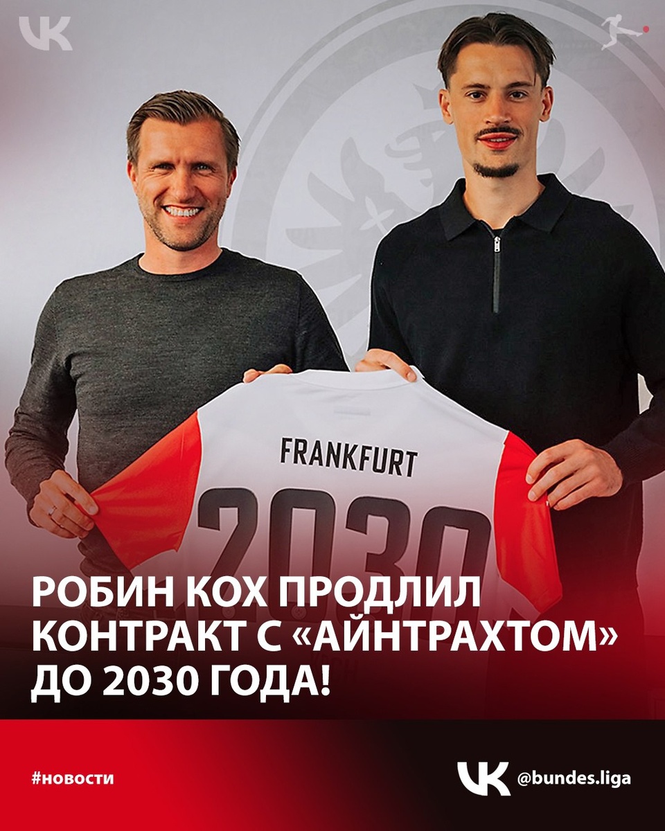 💯 Робин Кох продлил контракт с «Айнтрахтом» до 2030 года! Робин присоединился к «Айнтрахту» на правах аренды в 2023 году, а в 2024 был выкуплен у «Лидса». За это время Робин стал вице-капитаном «Айнтрахта», сыграл 86 матчей за «орлов», а в этом сезоне провёл на поле 3735 минут - больше, чем любой другой игрок в команде. 💰 По информации Hr-Sport зарплата игрока увеличится до 3,5 евро, включая бонусы.