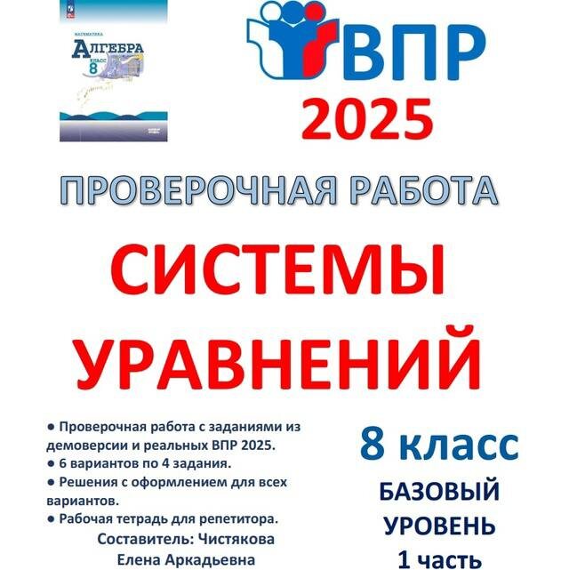 ❗Внимание❗✨Новинка✨ 🆗ВПР 8 класс Математика Проверочная работа "Системы уравнений" 📥 Скачать на WB: digital.wildberries.ru/offer/490348 Составлены из всех заданий демо-версии и реальных вариантов 2025 года , которые нам удалось найти по данной теме. 3 файла PDF: 🔹файл для учителя (6 вариантов по 4 задания, 2 страницы); 🔹файл с подробными решениями для всех вариантов (7 страниц); 🔹файл репетитору для двух вариантов со свободным местом для записи решения (4 страницы). В течение всего учебного года в процессе изучения каждой темы сможете попутно прорешивать задания из ВПР. 📚 Все материалы в таблице: vk.cc/cHlmAx