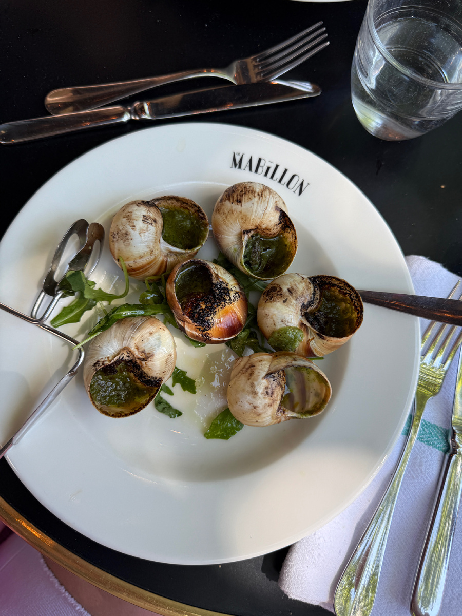Ближе к обеду движение перестало быть броуновским, а стало вполне себе целенаправленным, и направление пролегло как раз в сторону гигантских улиток. Мама дорогая, как это вкусненько! С чесночком и зеленью (и, честно говоря, с пивом 🙀). Какие-то XXL, что за ресторанчик — смотрите на тарелке.