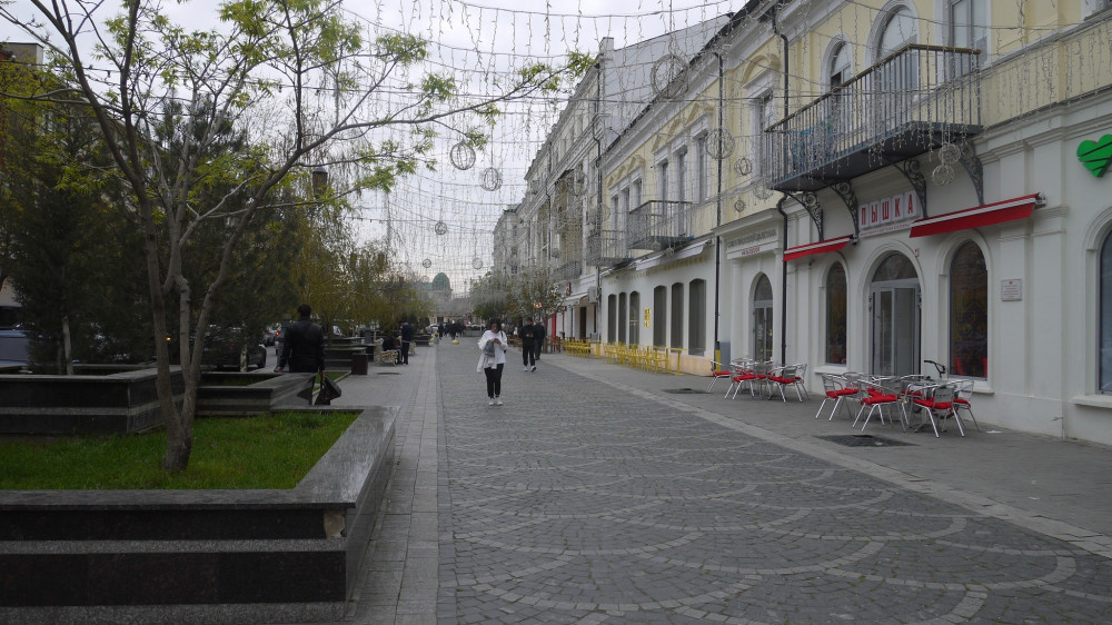 Самая колоритная и «приморская» улица Махачкалы Проходит она, следуя изгибам береговой линии, и долгое время была главной улицей Петровска и заметно выделялась благоустройством, в частности, первой была замощена, одной из первых получила освещение. Здесь были открыты мужская гимназия, гостиница «Гуниб», кинотеатр, аптека и другие важные для города заведения. Первоначальное название — Барятинская — по имени наместника российского императора на Кавказе генерал-фельдмаршала Александра Ивановича Барятинского (1815—1879). Современное название получила 8 апреля 1920 года в честь борца за установление советской власти в Дагестане Уллубия Буйнакского (1890—1919), проведшего ночь перед казнью в подвале на этой улице. Ну, подвал я не искала, а вот Владимир Ильич показывает, что поесть — туда! Почему-то в этот приезд в Дагестан с национальной кухней не сложилось от слова совсем 0_0 Для обеда в последний день я выбрала кафе «Дружба» Оно бывшее совесткое, так что мозаики там аутентичные А вот кухня