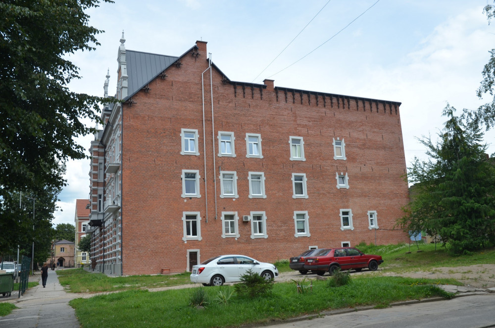 Показываю "последний" дом из отпуска за прошлый год, скоро подоспеет пачка новых :) Красота и гордость ФКР Калининградской области, один из самых больших старых немецких домов в самом центре Черняховска Фасадом дом смотрит на православный (сейчас) храм Св. Михаила, бывшую реформаторскую кирху. Это фото 2024 года А это 2018. Есть разница? Ремонт закончили буквально перед нашим приездом в августе 2024, в пабликах восторженно писали о восстановленных витражах, так что я отправилась посмотреть Отличительная особенность дома — огромная арка, проходящая насквозь. И несколько лестниц (по две с каждой стороны) — первая, между кирпичными «колонками» ведет в коридорчик на первом этаже (это я уже прошла через арку и смотрю на вход в калитку, за ней храм), а вторая на второй этаж и выше. Сейчас объясню Вот кстати еще фото 2018 года, понятно, что все стало краше Тут лучше видно эту систему двух лестниц. Справа — двери с витражами (первый этаж) Но мне же интереснее попасть на другую :) Там чудеса, т
