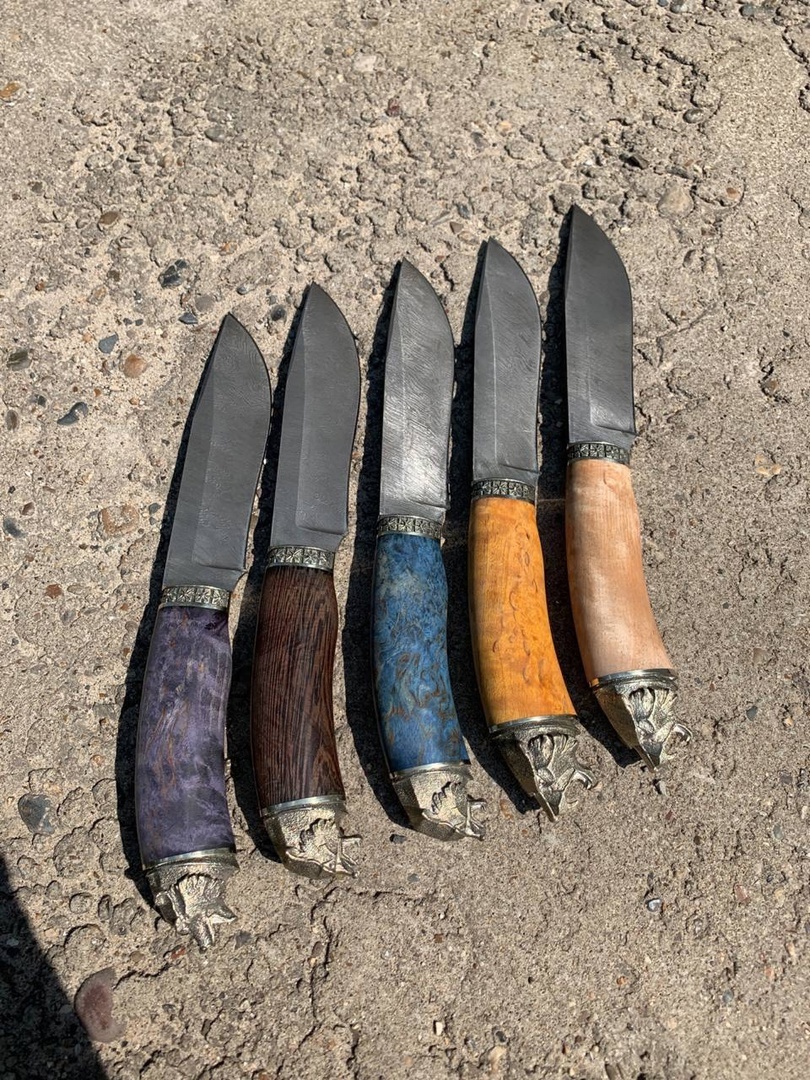 Рукоять — это то, чем управляется нож. Это контакт между человеком и металлом. Именно поэтому я уделяю ей не меньше внимания, чем самому клинку. Меня зовут Максим, я кузнец, и делаю ножи уже более семи лет. В своей кузнице (подробнее — здесь ) я подбираю материалы не по моде, а по опыту: как себя держат в руке, как стареют, как держатся при влаге, жаре, морозе. Что я считаю идеальной рукоятью Удобная рукоять — это: Именно под такие требования я подбираю материалы. Ниже расскажем, с кем именно я работаю и почему. 1. Карельская берёза — текстуры королевы 📌 Особенности : Я использую стабилизированную карельскую березу . Это дерево пропитано под воздействием специального состава, который делает его влагостойким, прочным, не боящимся времени .