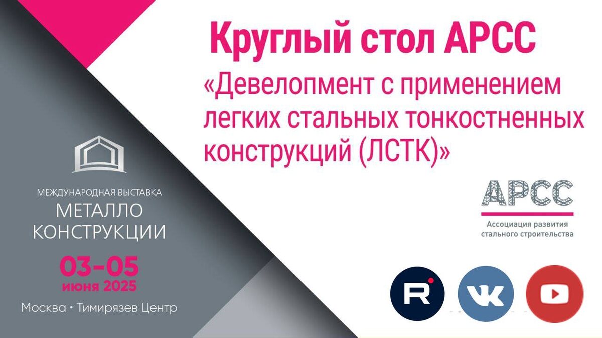 😘😋☹️😅😋 Круглый стол АРСС 03.06.2025 «Девелопмент с применением легких стальных тонкостенных конструкций (ЛСТК)» 🎥ВИДЕОЗАПИСЬ: 📱ВКОНТАКТЕ 🇷🇺RUTUBE 📱YOUTUBE 💻ПРЕЗЕНТАЦИИ ПО ССЫЛКЕ 📷ФОТООТЧЕТ ПО ССЫЛКЕ СПИКЕРЫ 🔴АРСС, Данилов Александр Николаевич 🔴ЦНИИСК им. Кучеренко, Ведяков Иван Иванович 🔴АРСС, Назмеева Татьяна Вильсовна 🔴ЦНИИСК им. Кучеренко, Гизятуллин Ильнур Раэлевич 🔴ПО ЭТАЛОН, Крючков Константин 🔴ЦНИИПСК им. Мельникова, Голубев Денис 🔴Северсталь, Смирнов Максим 🔴ТехноНиколь, Рауткин Дмитрий Сергеевич 🔴VPG Laserone (ООО ВПГ Лазеруан) Грезев Николай Витальевич 🔴ГК ДеКа-Строй, Гусев Алексей @АРСС