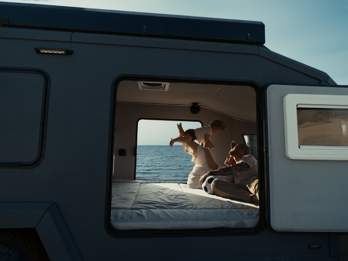 Путешествия меняются. Всё меньше людей мечтают о "пяти звёздах" - и всё больше о тишине, о возможности проснуться с видом на горы, поужинать на берегу моря и самим решать, куда свернуть завтра. Кемпер ГАЛАНДЕЦ - не просто дом на колёсах. Это ваш личный остров автономии, проходимости и уюта. Созданный не для парковок, а для маршрутов, где нет ни сотовой связи, ни соседей. ГАЛАНДЕЦ создан как полноценный участник бездорожья: А самое главное - тягач не тащит, а ведёт за собой равного по проходимости напарника. Мы не пишем "независимость от инфраструктуры" ради красивых слов. Мы имеем в виду реальную возможность жить вдали от цивилизации. Душ и туалет - в отдельной палатке рядом с кемпером. Такое решение сохраняет главное - простор внутри. Ничто не отнимает место у спального модуля, не мешает ужинать или отдыхать, не нарушает уюта. В путешествии с близкими это особенно ценно: каждый остаётся в комфорте, и у каждой зоны - своё логичное место. ГАЛАНДЕЦ - не про компромисс между ком