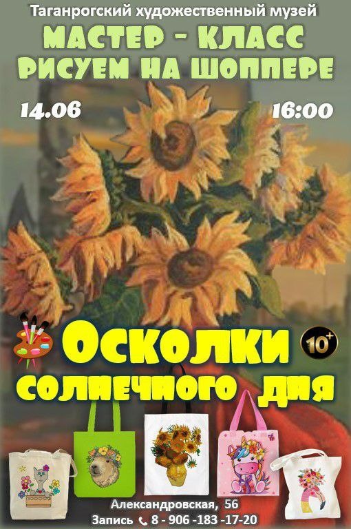 👩🏻🎨14 июня в 16:00 приглашаем детей (от 8-10 лет) и взрослых на мастер-класс по росписи шопперов "ОСКОЛКИ СОЛНЕЧНОГО ДНЯ "