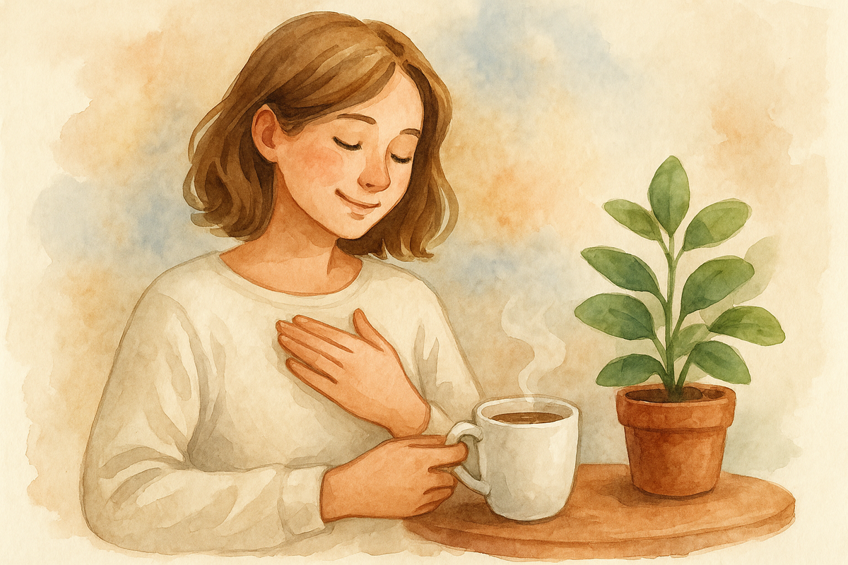✅ Начинайте с малого. Не нужно сразу устраивать spa-дни. Можно просто начать с 10 минут тишины утром, чашки любимого чая, короткой прогулки.