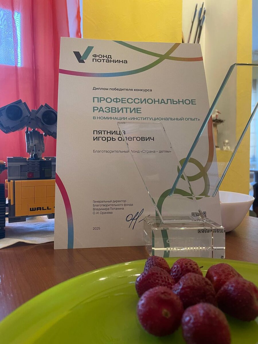 Не помню какой это был фильм, даже не помню почему я это помню… Но в одном из фильмов помню диалог следующего содержания: Стук в дверь - Кто там? - Это почтальон. Вам телеграмма. Правительственная! - Других не получаем… Давайте, где расписаться? Вот так и сегодня курьер привез необычную посылку от Фонда Потанина с хрустальным кубком (не кубок, не знаю как назвать) и дипломом победителя конкурса Професстональное развитие. А мы с командой в этот момент как раз вовсю работали именно над этим проектом-победителем конкурса. Приятное совпадение, казалось бы… А на самом деле - итоги долгой и кропотливой работы!
