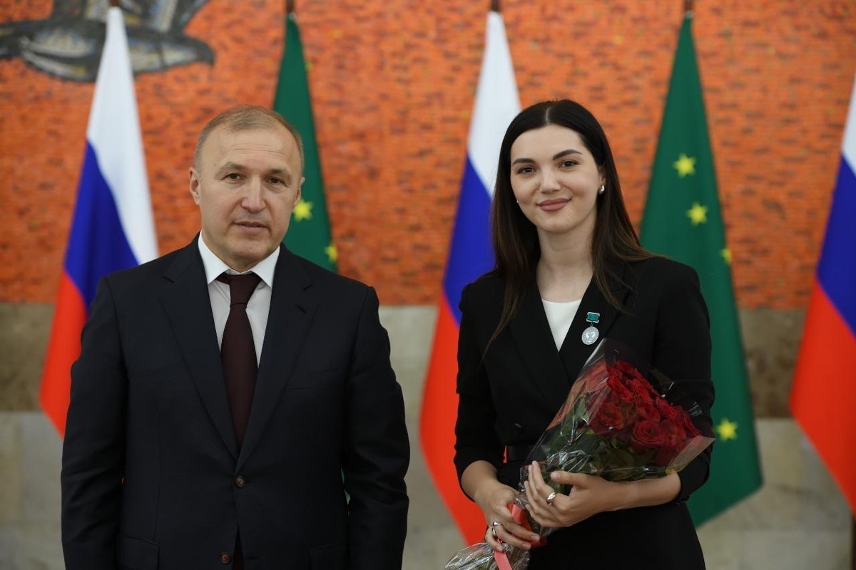 Указом Главы Республики Адыгея Мурата Кумпилова «О присвоении почетных званий Республики Адыгея» за заслуги в области культуры и искусства