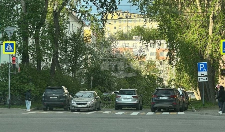 🛑 Упавшее дерево перегородило дорогу в центре Мурманска