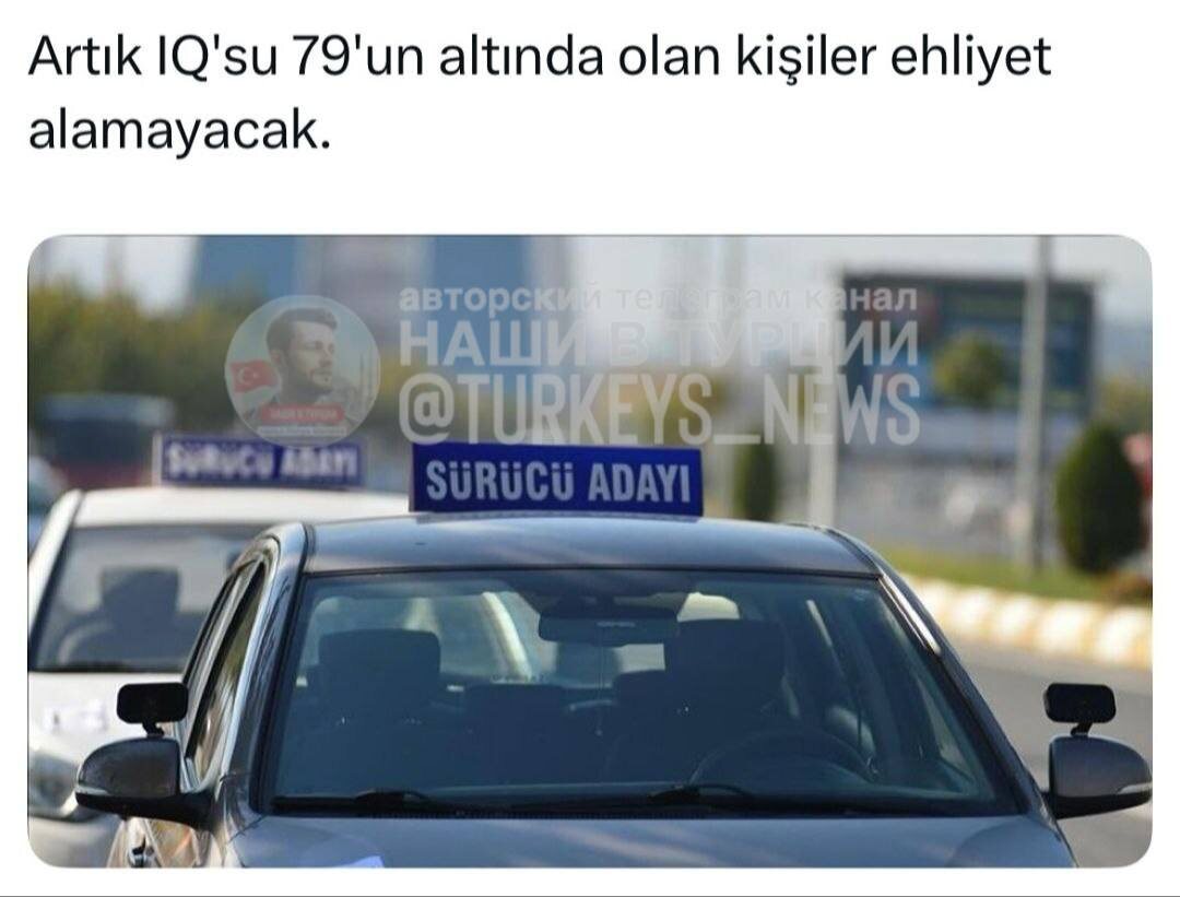 🇹🇷 В ТУРЦИИ ЗАПРЕТИЛИ ВОДИТЕЛЬСКИЕ ПРАВА ДЛЯ ЛЮДЕЙ С IQ НИЖЕ 79