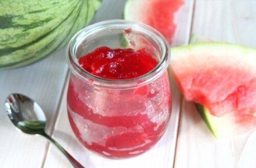 📌 Ингредиенты: Арбуз (мякоть) - 1 кг. Сахар - 800 г. Сок одного лимона Ванилин - 0,5 ч. л. 🔪 Приготовление: 1. Нарежьте мякоть кубиками и удалите все косточки. 2. Посыпьте сахаром и дайте постоять 2-3 часа. 3. Затем слейте сок и сварите из него сироп. Залейте сиропом кусочки арбуза и доведите до кипения. 4. Сними варенье с огня и дайте настояться 8-10 часов. 5. После этого снова доведите до кипения варенье и опять дайте настояться 3-5 часов. 5. Теперь добавьте ванилин, лимонный сок и кипятите 3-5 минут. Варенье разлить по стерилизованным банкам и закатать.