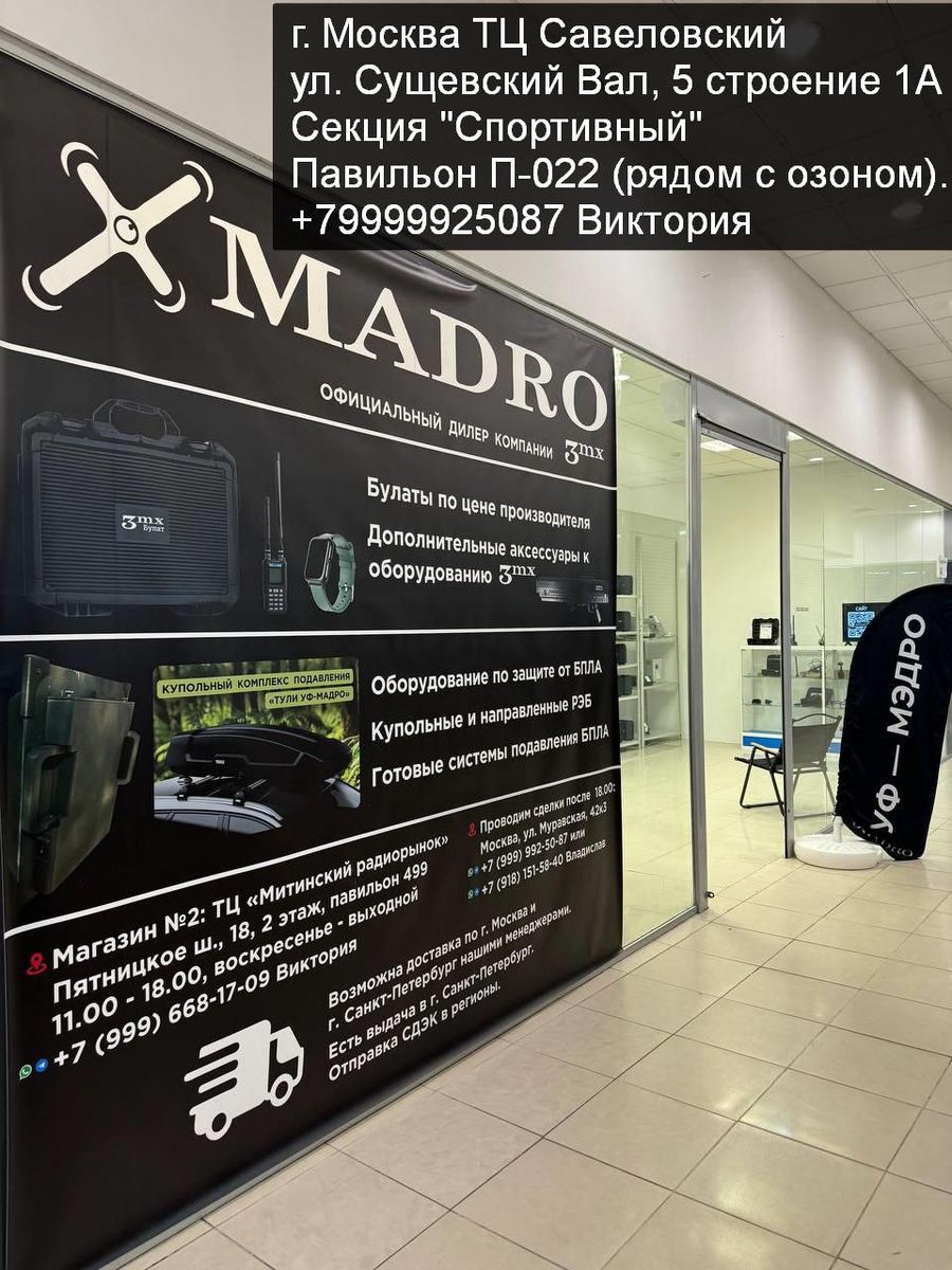 Компания MADRO, официальный дилер бренда 3mx и разработчик систем РЭБ под маркой «УФ-MADRO», продолжает расширять присутствие в столице. Теперь приобрести оборудование для обнаружения и подавления БПЛА можно в двух локациях: в ТЦ «Савеловский» и на Митинском радиорынке. Это стратегические точки, обеспечивающие доступность технологий безопасности как для корпоративных клиентов, так и для частных лиц. Компания зарекомендовала себя как лидер в области противодействия беспилотникам. Её продукция, включая детектор «Булат-4» и купольные комплексы подавления, используется для защиты критически важных объектов по всей России и на новых территориях112. В ассортименте магазинов: Каждое устройство проходит предпродажное тестирование, а клиенты получают консультации по настройке и эксплуатации. Магазин расположен в историческом торговом комплексе, который с 1998 года является точкой притяжения для ценителей электроники и спецтехники Адрес: