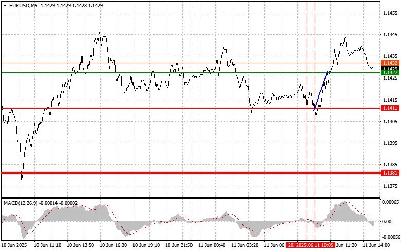 https://basechop.ru/wordpress/?p=45862 Разбор сделок и советы по торговле европейской валютой Первый тест цены 1.1411 пришелся на момент, когда индикатор MACD только начинал движение вниз от нулевой отметки, что стало подтверждением правильной точки входа на продажу евро. Однако до падения пары дело так и не дошло и спустя короткий промежуток времени состоялся еще один тест 1.1411 и пришелся он на момент нахождения MACD в области перепроданности, что позволило выйти и продаж и перевернуться в покупки. В итоге пара выросла на 20 пунктов. Во второй половине дня европейская валюта будет в значительной степени зависеть от грядущих данных об инфляции в Соединенных Штатах. Внимание экспертов и участников рынка сосредоточено на предстоящей публикации статистики по индексу потребительских цен (ИПЦ) за май месяц, а также на базовом индексе, который не учитывает подверженные колебаниям цены на энергию и продукты питания. Если инфляция превысит ожидания, это может усилить предположения о том, ч