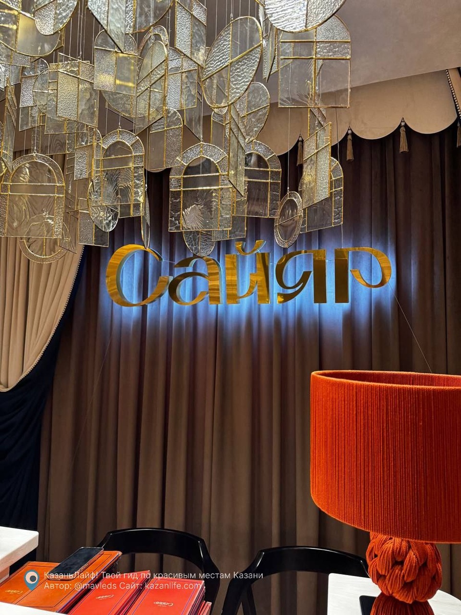 Интерьер ресторана Сайяр с террасой на крыше в новом театре Камала ✨ Здесь подают десерт в виде билета в театр 😋 Цены скажу сразу космические 😅 эчпочмак 390 рублей