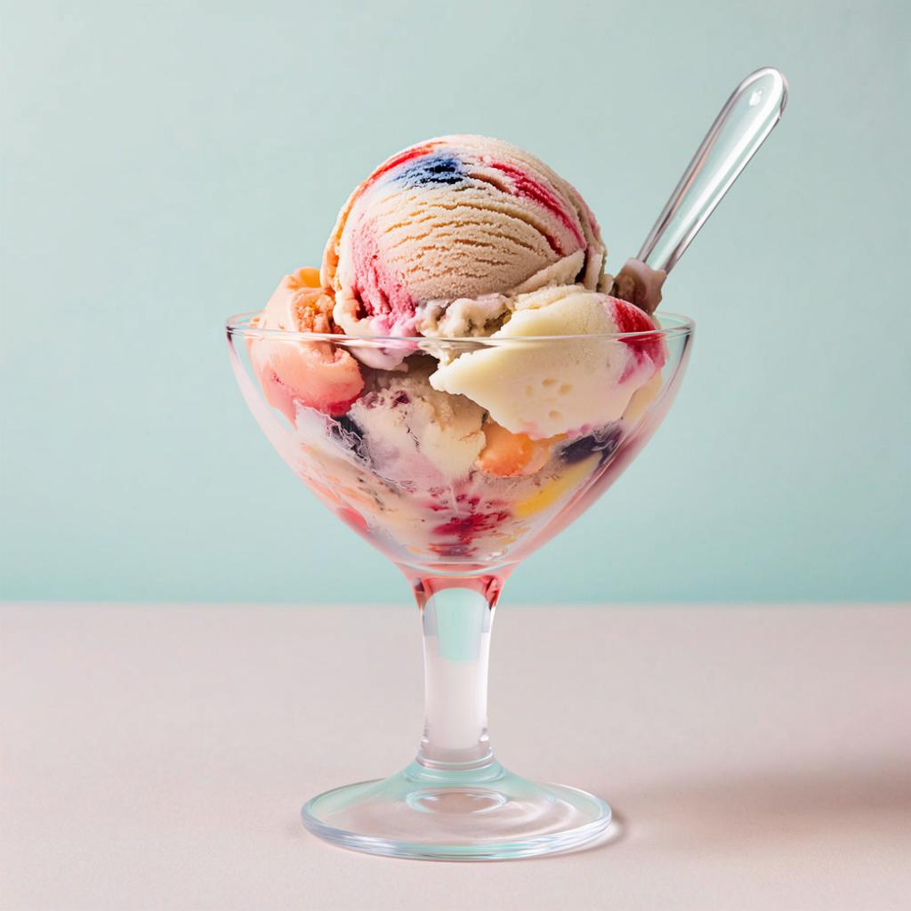 Рецепт рассчитан примерно на четыре порции. Фруктово-йогуртовое мороженое (без варки) Фрукты: Очистите фрукты от кожуры и косточки, порежьте кусочками и измельчите в пюре с помощью погружного блендера или кухонного комбайна. Смесь продуктов: Смешайте фруктовую кашицу с йогуртом и медом/сахаром. Тщательно перемешайте, добиваясь однородности массы. Улучшение вкуса: Для придания свежести и сохранения фруктов добавить сок лимона. Размещение в форме: Подготовленную массу разложите в специальные формы для мороженого или же перелейте в неглубокий лоток и отправьте в морозильник минимум на шесть-восемь часов. Через каждые два-три часа доставайте из морозилки и слегка взбивайте ложкой или вилкой, чтобы разбить крупные кристаллы льда и сделать структуру нежнее. Подача: Перед подачей вынуть из холодильника заранее, оставить на столе на 10–15 минут, чтобы мороженное стало мягче. Приятного аппетита!
