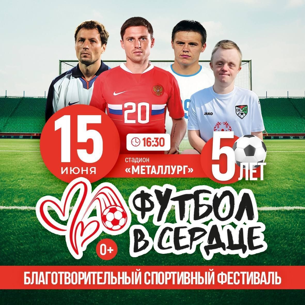 ⚽️Футбол в сердце: яркий праздник спорта и добра! Уже в это воскресенье, 15 июня, на стадионе «Металлург» пройдёт благотворительный фестиваль «Футбол в сердце». Гостей ждёт незабываемое зрелище: легенды российского футбола Игорь Семшов, Руслан Пименов и Дмитрий Хлестов сыграют с юными футболистами из Липецка. Также они проведут мастер-классы, в том числе для участников проекта «Инклюзивный футбол», который помогает детям с аутизмом и синдромом Дауна находить друзей через спорт. 🔥В программе: – Концерт группы «Отпетые мошенники»; – Интерактивные площадки; – Ростовые куклы, диджеи, кавер-группы и фотозоны. Пригласительные тут Начало в 16:30. Приходите всей семьей! 0+