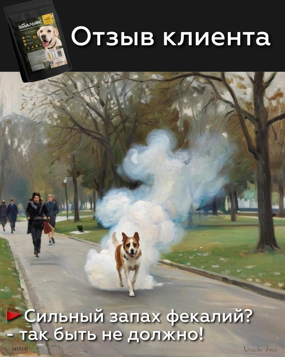 (не шучу, а цитирую из отзыва, смотрите ниже) После перехода на монобелковый корм для крупных пород "ЗооАльянс":
