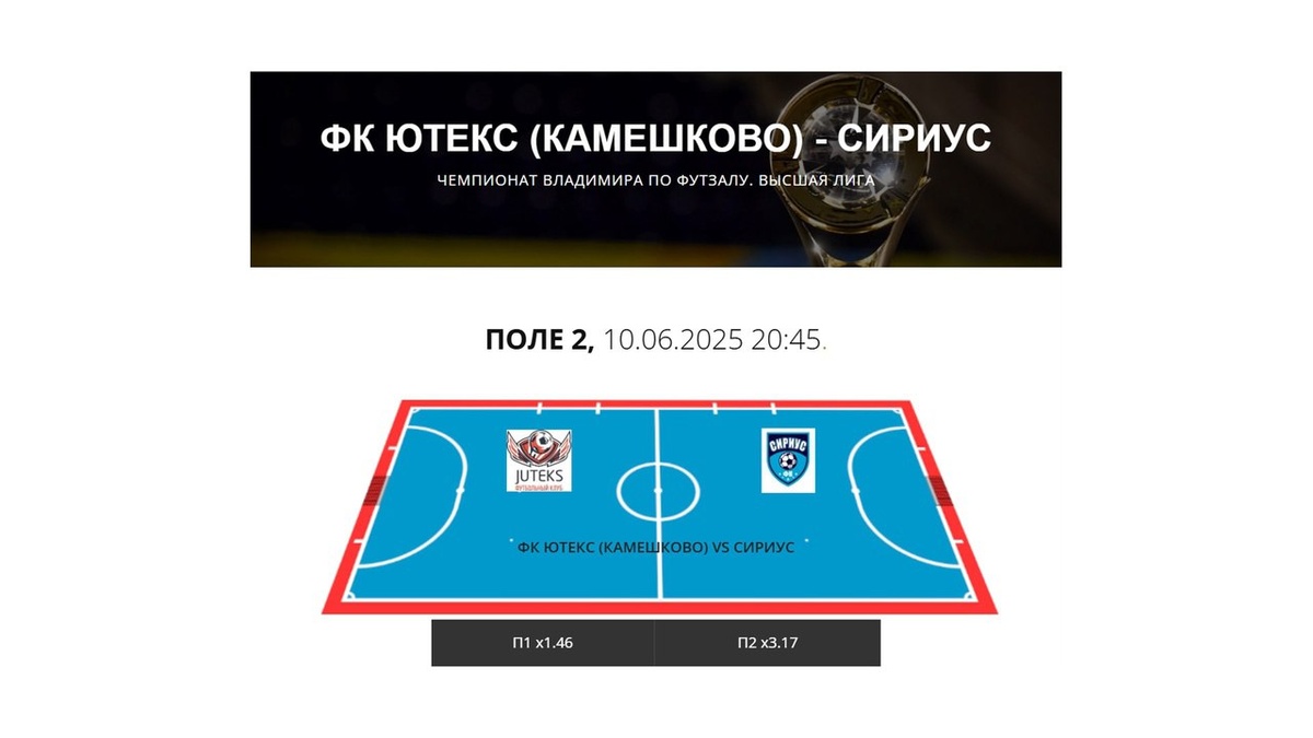 Чемпионат Владимира по футзалу. Высшая лига. 10.06.2025 г. ФК Ютекс (Камешково) - Сириус 11:3 (5:0) Обзор