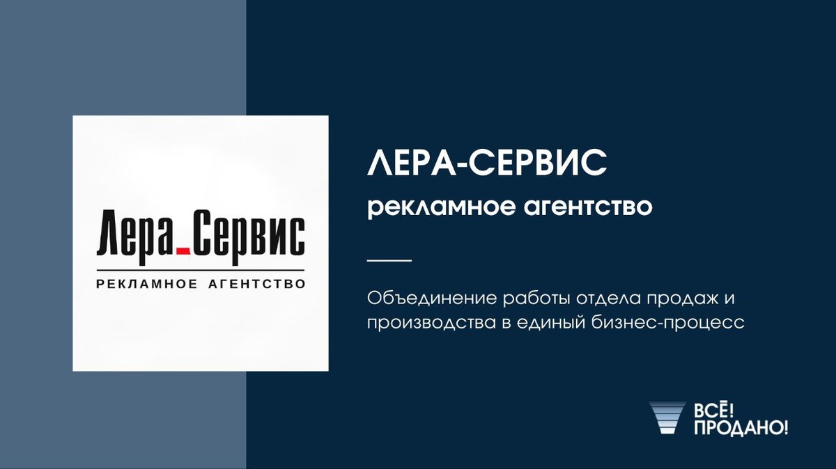 «Лера Сервис» – крупное рекламное агентство с собственным производством, работающее с 1992 года. Отдел продаж использовал Битрикс24, а производство – отдельную программу. Это приводило к: 1. Подключить все источники лидов в одно окно и в том числе понимать эффективность используемых рекламных каналов. 2. Исключить потерю входящих лидов и ручного переноса данных. 3. Настроить аналитику по отделу продаж: планы, конверсия, эффективность процессов. 4. Работать «в одном окне» с заказами клиентов. 5. Организовать общение между сотрудниками (дизайнеры, производство) в чате с привязкой к конкретному Заказу. 6. Организовать удобный и быстрый доступ к документам и макетам между сотрудниками разных отделов, исключить потерю данных и ручную отправку. 7. Обеспечить прозрачность статусов работы с заказами клиентов (продажи и производство в общей связке). 8. Организовать единое безопасное облачное пространство компании, где данные невозможно удалить или скачать (диск, чаты, задачи, заказы и т.д.). Н