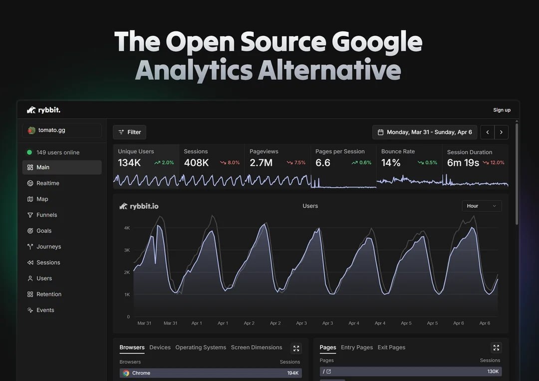 Rybbit Analytics — инструмент с открытым исходным кодом и более понятным интерфейсом. Зайдёт тем, кто ценит конфиденциальность и удобство.