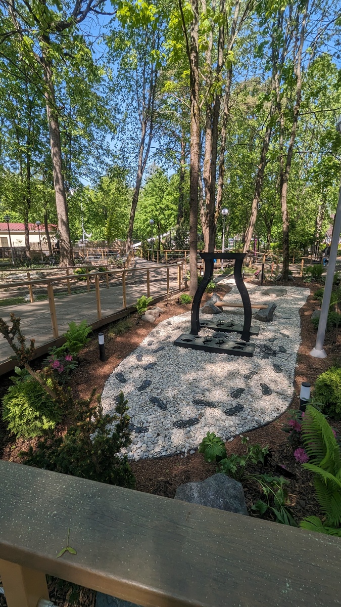 В 2024 году в старом Зеленогорском парке случилось настоящее преображение (о котором мало кто еще знает). Как я об этом узнала? Ну, скажем так… в нужном чате сижу - «А Аня говорила» Провели масштабное и, что особенно приятно, очень гармоничное благоустройство. Без вырубок, без бетонных завалов — наоборот, всё сделано с уважением к природе и с любовью к деталям. Вместо глобальных перестроек — аккуратно вписанные современные элементы. Атмосфера уюта и покоя, за которую этот парк любят местные, осталась. А вот гулять теперь стало гораздо приятнее. Чтобы попасть на новую прогулочную экотропу, заходите в парк и держитесь чуть правее — совсем скоро вы окажетесь на аккуратной деревянной дорожке, которая мягко петляет по зелёному массиву. Здесь действительно приятно гулять. Никаких толп, никаких «тропинок к месту, где все фотографируются». Просто тихая, ухоженная терраса среди деревьев. Что вас ждёт на экотропе: Вдоль тропы — ухоженные зелёные насаждения, стильные мини-памятники и множество ую