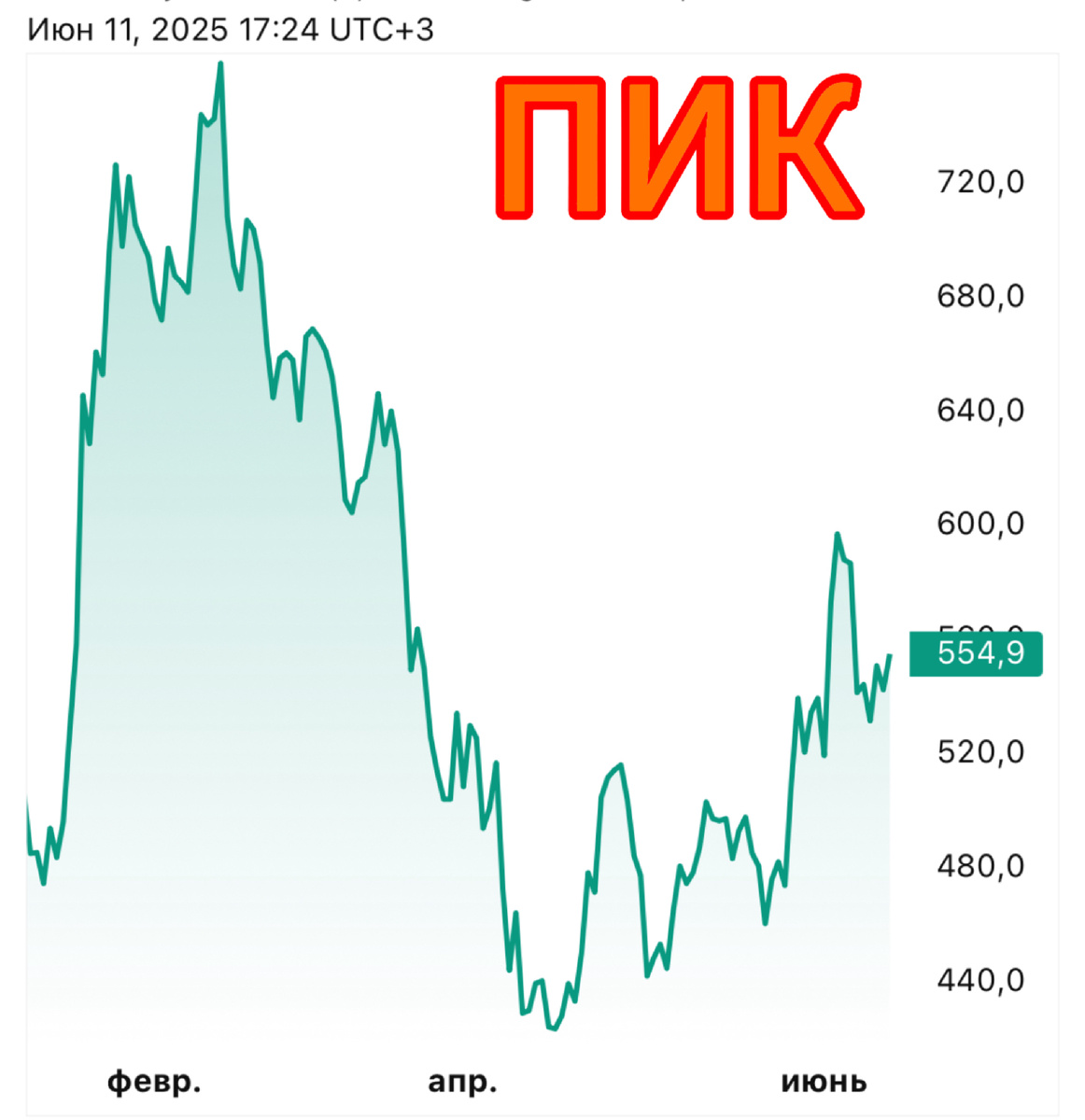 Рынок недвижимости в июне 2025: текущая ситуация На середину 2025 года российский рынок недвижимости показывает неоднородную динамику. Спрос остается умеренным из-за высоких ипотечных ставок (11-12% для новостроек). При этом предложение продолжает расти - крупные застройщики активно вводят новые проекты, особенно в бюджетном и комфорт-классе. Государственные программы поддержки (например, льготная ипотека для семей с детьми) частично компенсируют снижение покупательской активности. Цены стабилизировались после роста предыдущих лет, в отдельных сегментах наблюдается коррекция на 5-10%. Анализ компании "ПИК" (MOEX: PIKK) ПИК сохраняет лидерство по объемам ввода жилья в России, специализируясь на массовом сегменте (эконом и комфорт-класс). Компания имеет сильные позиции в Москве, Подмосковье и крупных региональных центрах (Казань, Екатеринбург). Ключевые драйверы роста в 2025 году: - Участие в госпрограммах (реновация, социальное жилье) - Развитие арендного направления (проект "ПИК-Р