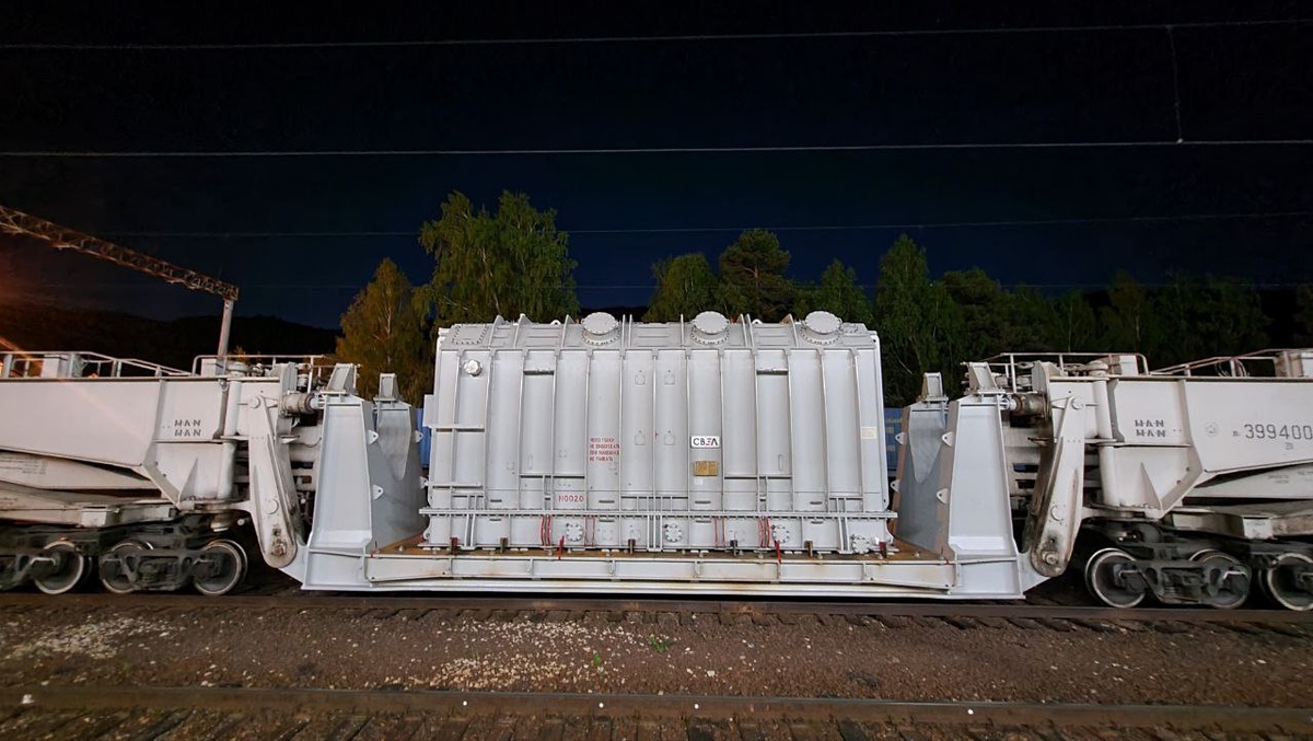 Компания Эн+ продолжает модернизацию Красноярской ГЭС. На днях сюда доставили новый трансформатор, который помогает повысить напряжение и уменьшить потери при выработке электроэнергии. Трансформатор изготовили по спецзаказу компании Эн+, это часть комплексной программы «Новая энергия». Вес трансформатора составляет 300 тонн, высота — 4 метра, мощность 630 МВА. — Своевременная замена и модернизация оборудования важна для любого предприятия, а тем более для предприятия энергетической отрасли. Ведь это в первую очередь обеспечение надежности и безопасности энергосистемы всего государства. Сегодня с поставкой седьмого трансформатора на 220 кВ мы завершаем большой блок модернизации, а полностью переоснастить станцию планируем к 2031 году. Станислав Легенза, директор Красноярской ГЭС . Доставку трансформатора обеспечило ОАО «РЖД». Для этого организовали отдельный поезд, в состав которого вошли локомотив и специальная платформа: колодцевый транспортёр длиной 40 метров. Это крупногабаритный гр