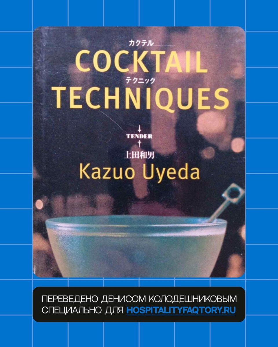 #КнигаДня Переведено Денисом Колодешниковым специально для Hospitality Faqtory. «📌 Зачем бартендеру читать Cocktail Techniques? Cocktail Techniques Кадзуо Уэды — это не просто сборник рецептов, а глубокое погружение в философию и практику японского барного искусства. Книга предлагает систематизированный подход к приготовлению коктейлей, начиная от выбора льда и стекла до техник смешивания и подачи. 📌 Чем это полезно для бартендеров? Углубление знаний: Книга подробно объясняет каждую стадию приготовления коктейля, что позволяет барменам понять и освоить тонкости японского подхода к миксологии. Развитие навыков: Изучение техник, таких как hard shake, помогает улучшить текстуру и вкус напитков, а также повысить уровень мастерства. Визуальное обучение: Иллюстрации и схемы в книге способствуют лучшему пониманию и запоминанию техник. 📌 Как это может улучшить навыки бартендера? Точность и внимание к деталям: Японский подход к барному искусству акцентирует внимание на каждой детали