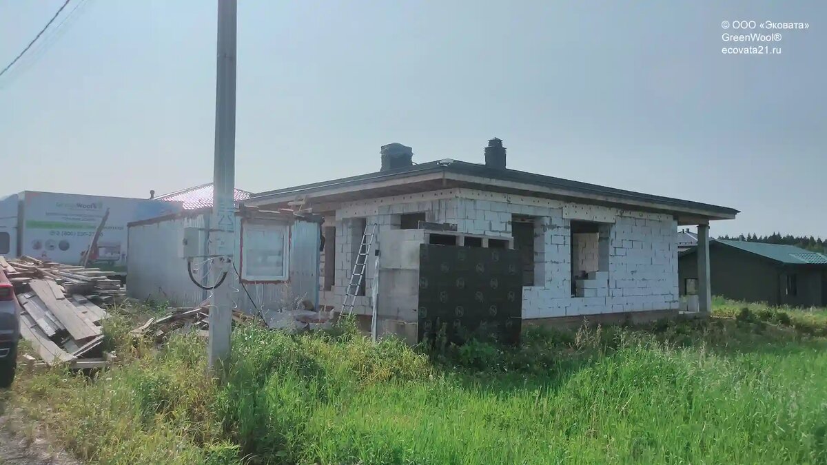 📍 В июне 2025 года в д. Нефедьево (МО) утеплён новый дом: 120 м² чердачного перекрытия, слой 250 мм. Использована эковата GreenWool®, задувной утеплитель с более чем 30-летней историей производства. Почему именно эковата?