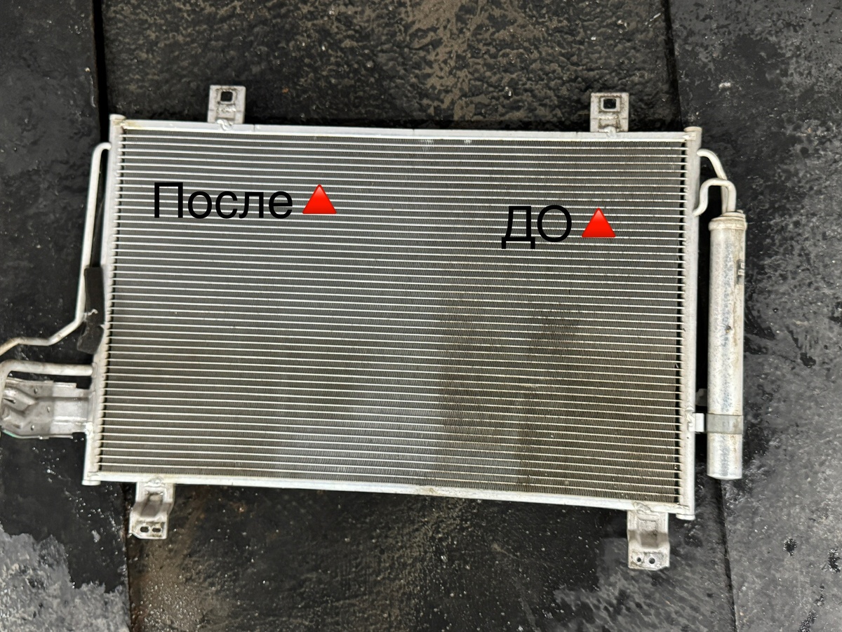 Мойка радиаторов Mazda CX-8 Не смотря на то, что автомобиль привезён из-за границы, где царит чистота, дороги моют шампунем и отсутствуют тополя, радиаторы были всё-таки забиты песком, грязью и даже посчастливилось найти шершня. А если без шуток, мойку радиаторов рекомендуем делать ежегодно, желательно перед летним сезоном.