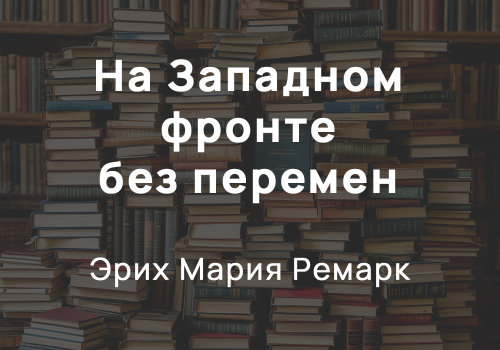 «На Западном фронте без перемен» — роман, описывающий ужасы Первой мировой войны через призму восприятия молодых солдат. Главный герой, Пауль Боймер, и его одноклассники, вдохновленные националистической пропагандой, идут на фронт с романтическими представлениями о войне. Однако реальность оказывается жестокой: двадцать лет жизни оказываются разрушены, а идеалы разрушены. Книга показывает, как пацаны, которые мечтали о героизме, сталкиваются с ужасами окопной войны — страхом, голодом, смертью и бессмысленностью их жертв. В различных сценах описываются боевые действия, потери товарищей, ранение и психологическая травма, которые преследуют солдат даже после окончания сражений. Финал книги завершает осознание полного бессмысленности войны и того, как она меняет людей. Пауль умирает, оставаясь одиноким и оторванным от всей прежней жизни. Эта трагическая судьба делает акцент на теме утраты человеческого достоинства и ценности жизни в условиях тотального насилия. «На Западном фронте без пере