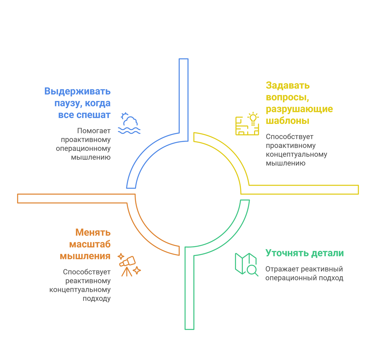 Но что-то странное происходит: Это не выгорание. Это когнитивный потолок, где ваш текущий стиль мышления уже не приносит прежней отдачи. Потому что старые паттерны мышления отлично отработаны и больше не требуют включенности. Мозг не любит перерасход энергии. А стратегическое мышление энергозатратное.