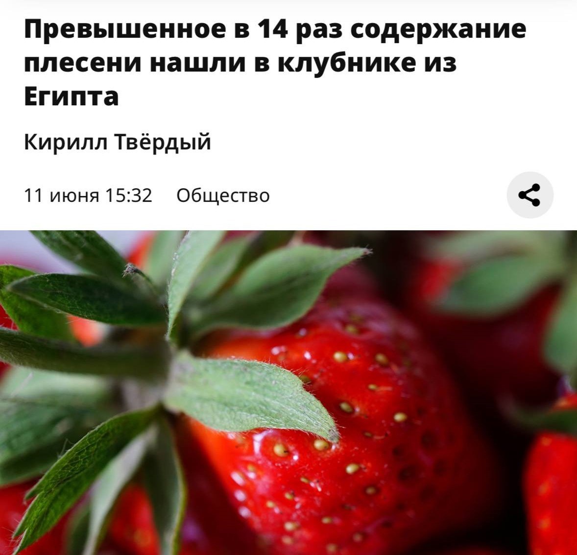 Опасная клубника из Египта: почему ягоды с плесенью попадают на наши столы? Роспотребнадзор обнаружил в египетской клубнике превышение плесени в 14 раз от допустимой нормы. Такие ягоды могут спровоцировать аллергию, отравление и хронические болезни кишечника. Что не так с египетской клубникой? ✔ Причины заражения: → Антисанитария при сборе и упаковке. → Нарушение температурного режима при перевозке (вместо 0...+2°C — +10°C и выше). → Долгий срок доставки — ягоды плесневеют ещё в пути. ✔ Чем опасна плесень? → Микотоксины (например, патулин) — не разрушаются при мытье или заморозке. → Риск аллергии — особенно у детей. → Расстройство ЖКТ — тошнота, диарея, боли в животе. Масштабы проблемы Египет — крупнейший поставщик клубники в РФ (40% зимнего импорта). Каждая 5-я партия забраковывается на границе. В группе риска — сетевые магазины, где ягоды хранят неправильно. Как выбрать безопасную клубнику? 1️⃣ Осмотрите упаковку — конденсат и тёмн