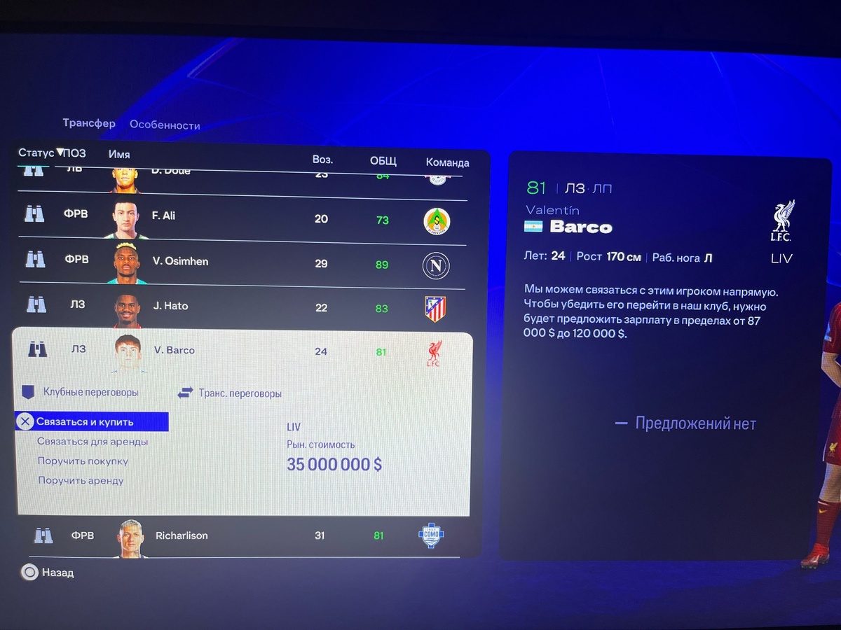Здравствуйте,кто нибудь знает почему я не могу обсудить переход с игроком когда у него по контракту 6 месяцев осталось