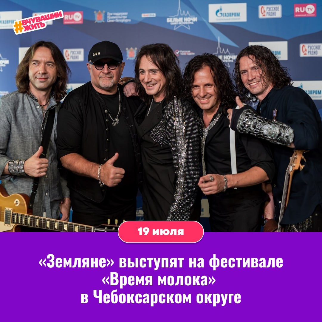 #вчувашиижить — под гитару "Землян" с друзьями вечер проводить 💥19 июля в посёлке Новое Атлашево на территории рядом с фермой "ЧебоМилк" пройдет фестиваль «Время молока» — и его главными гостями станут легендарные "Земляне"! Хиты, которые знает вся страна — в живом исполнении, под открытым небом и с отличным настроением. 🎉 Вход — свободный! Подписаться/ Предложить новость