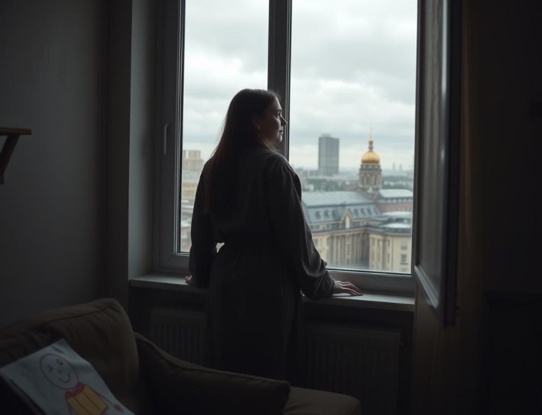 Марина стояла у окна, кутаясь в старый, выцветший халат. За окном, в привычном пейзаже панельных домов, начинался очередной московский день. Серое небо, пропитанное влагой, грозило дождем. Лишь редкие окна светились желтым, как будто кто-то еще не смирился с рассветом. В ее собственной однушке, на улице, где дома были похожи один на другой, это было обыденностью.