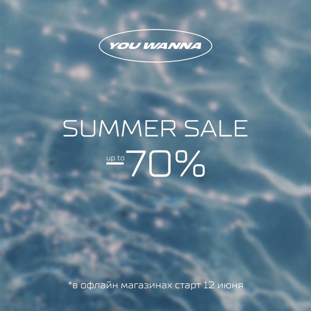 SUMMER SALE до -70% Лето начинается с больших скидок! Уже сейчас — в приложении и на сайте. В магазинах — с 12 июня. you-wanna.ru / мобильное приложение App Store и Google Play / офлайн магазины