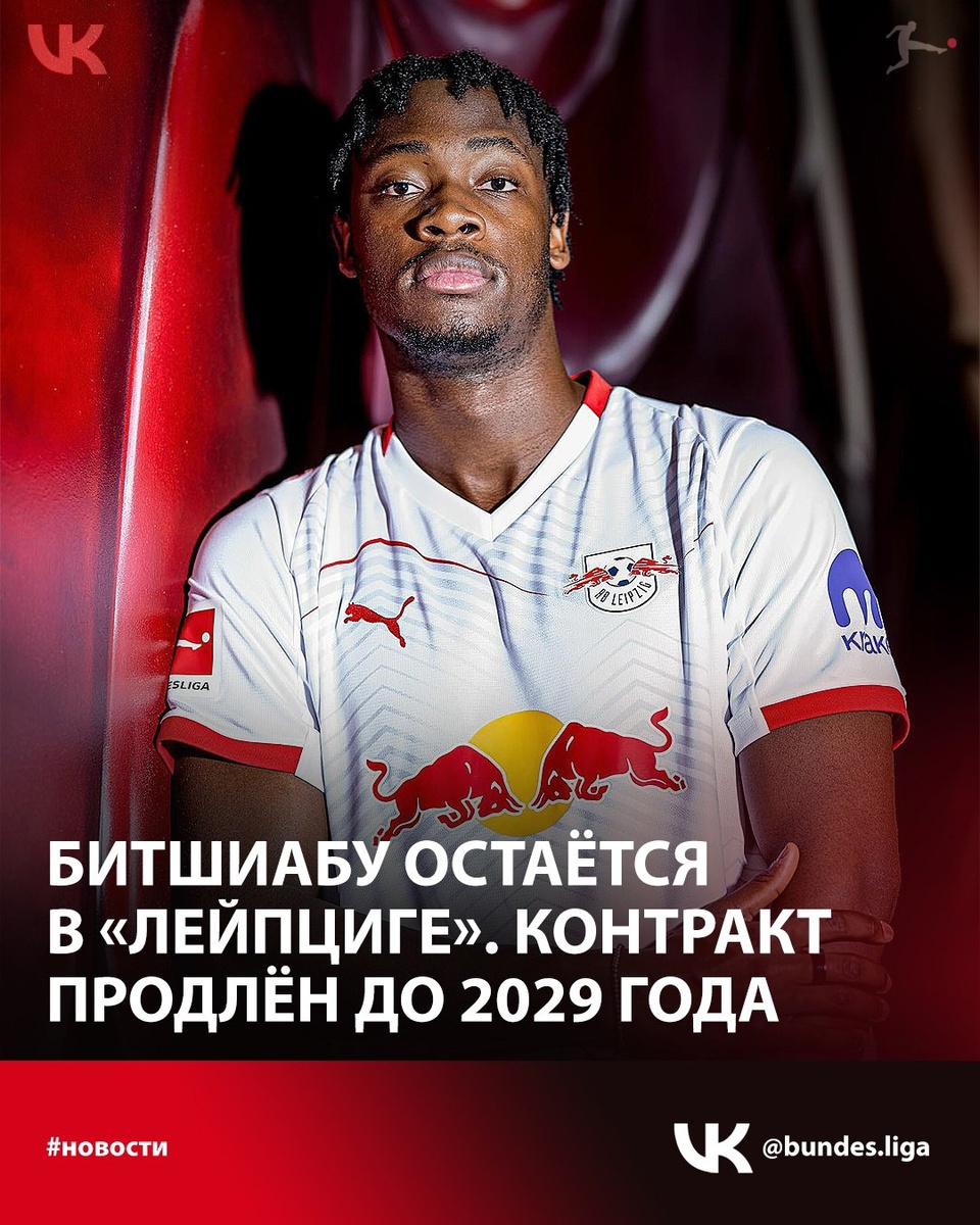 ⚡⚽ Эль-Шадай Битшиабу остается в «Лейпциге»! Немецкий клуб продлил с 19-летним защитником контракт до 2029 года