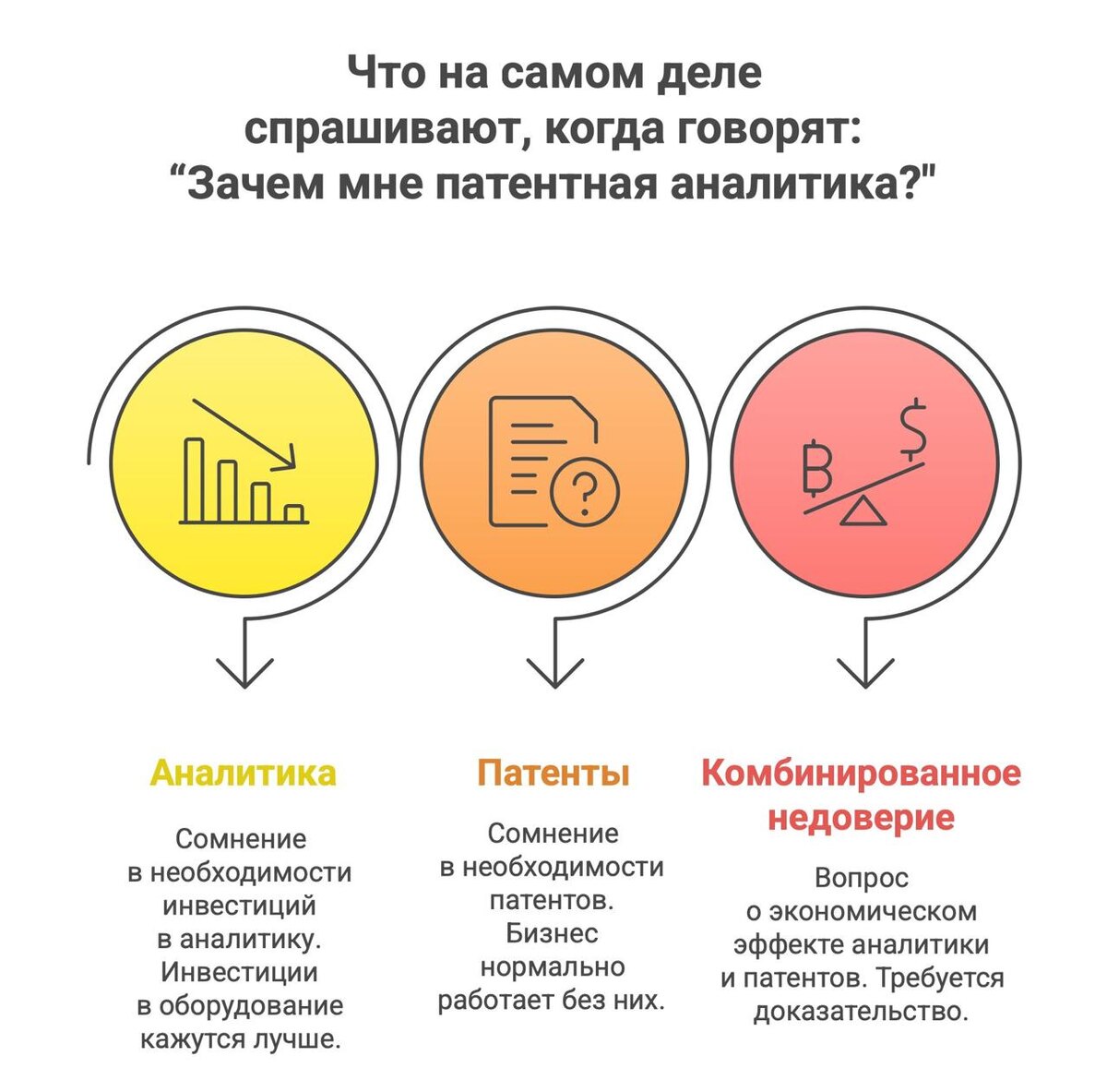 Ответ на вопрос зависит от того, кто спрашивает, и как спрашивает, потому что когда человек говорит: «А зачем мне ваша патентная аналитика?», он зачастую подразумевает один из более глубинных вопросов:
