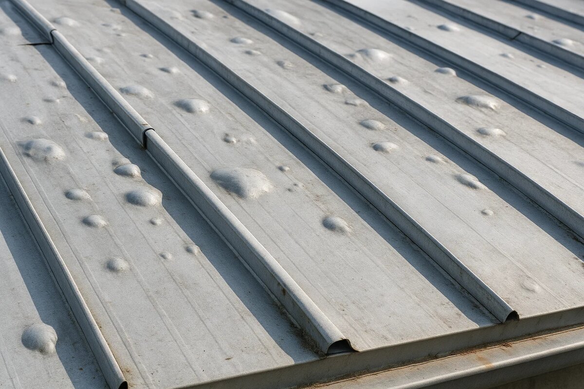 Тревожные симптомы: изменение звука при дожде — металл начинает «бухтеть», появление ржавых подтеков в местах соединений, следы влаги на чердаке под проблемными участками. Если заметили хотя бы один признак — время действовать.