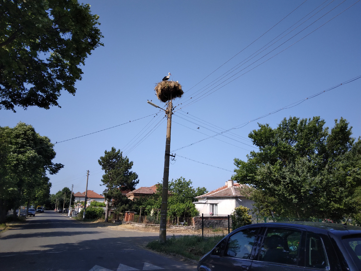 У нас в селе аисты почему- то не селятся, а вот в сёлах Карнобатской долины их гнёзд довольно много. Сейчас в этих гнездах уже подрастают аистята. Одно такое гнездо находится в самом центре села Сигмен. Оно там уже много лет и его постояльцы- не только семейство аистов, но и множество воробьёв, которые нашли себе пристанище в толще соломы и веточек. Такое вот аистино- воробьиное содружество. В Сигмене находится большая молочная ферма, а при ней- фирменный магазин под названием " Млечен кът". " Молочный закуток". Там продаётся извара, болгарский творог, который делается из сыворотки. Свежий, очень вкусный и сравнительно недорогой, килограмм стоит 5.80 лв. Раньше он был дешевле, за несколько последних лет подорожал практически вдвое, как, впрочем, и многие другие продукты питания. Извару нас попросил купить Христо, хозяин нашего с Ольгой подопечного щенка. Увидел, что мы приносим его Шарко творог, и ему самому тоже захотелось. Пока что видимых изменений в состоянии щенка немного, разв
