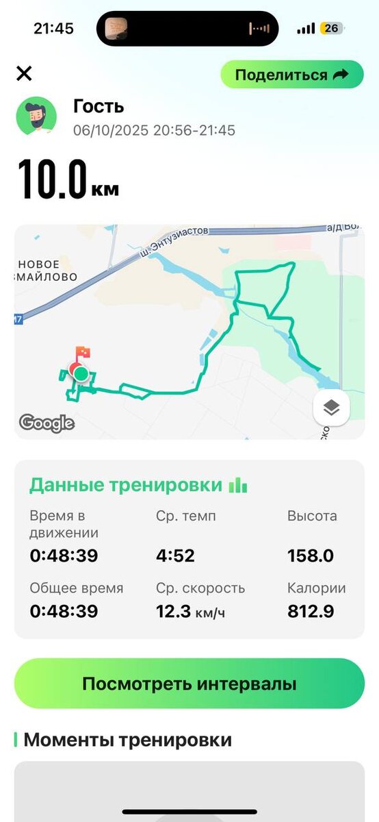 Приложуха жестко скамит, на самом деле пробежал за 58 минут. Уже не так сногсшибательно, но все равно мой рекорд.
